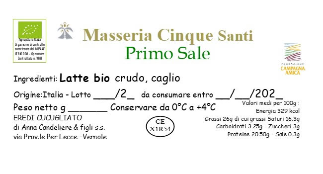 Il Primo sale è uno dei formaggi freschi, tipici pugliesi, morbido ed elastico, dal sapore delicato con netto riconoscimento del latte. Si presenta con colore bianco e superficie lucente.