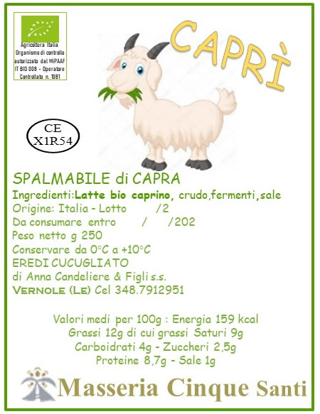 La produzione avviene con latte caprino pastorizzato, è un formaggio a coagulazione proteica questo latticino contiene sia le proteine del formaggio, sia quelle della ricotta. Lo Spalmabile è un latticino poco calorico l'apporto energetico è infatti simile a quello dei formaggi freschi