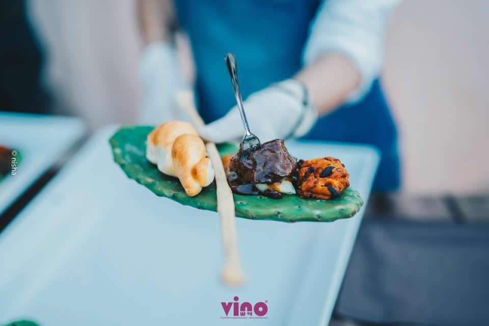 Insieme ai vini è stato possibile degustare i Salumi Mocavero, i prodotti caseari della Masseria Cinque Santi, le prelibatezze di Donna Olearia, i prodotti de Il Fornaio di Bufo e Musardo, la specialità de L’Orecchietta e l’Acqua Orsini oltre alle spettacolari preparazioni degli Chef Alessandra Civilla, Alfredo De Luca, Emanuele Frisenda. Le portate sono state impiattate con variopinti ingredienti, in vivaci contrasti di colore.